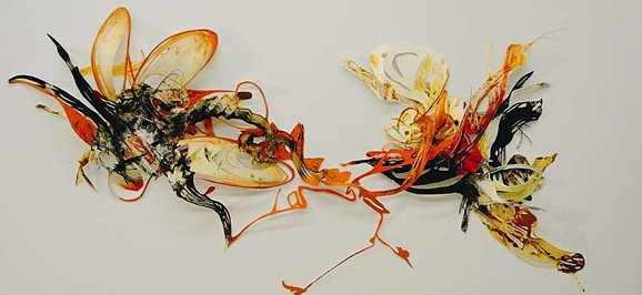 Die zuvor erstellten Farbradierungen bilden das Fundament, aus dem sich die bewegt erscheinenden Formen in die 3. Dimension erheben. Leicht und mit deutlicher Präsenz streben sie dem Betrachter entgegen und lassen die Verbindung zwischen Tanz, Musik und Bildwelt einen Höhepunkt erfahren.