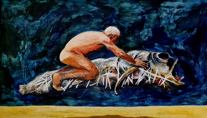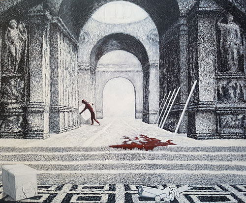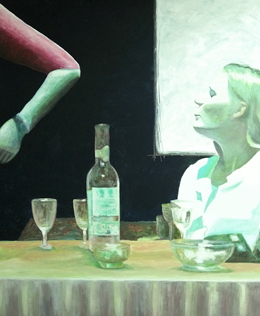 Reinhard Ader "Der Alte sucht inmitten der Tanzenden seine Brille" 2021, Acryl auf Leinwand, 50 x 60 cmReinhard Ader "Today and Tomorrow II" 2019, Acryl auf Leinwand, 170 x 100 cmReinhard Ader "Stillleben" 2015, Acryl-Vinyl auf Leinwand, 120 x 100 cmReinhard Ader "Die glückliche Krähe" 2016, Acryl und Graphit auf Leinwand, 80 x 120 cmReinhard Ader "The dark Side" 2016/17, Acryl-Vinyl auf Leinwand, 100 x 120 cm