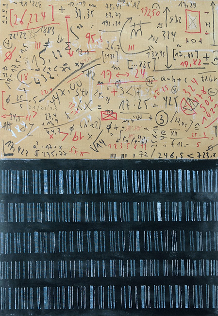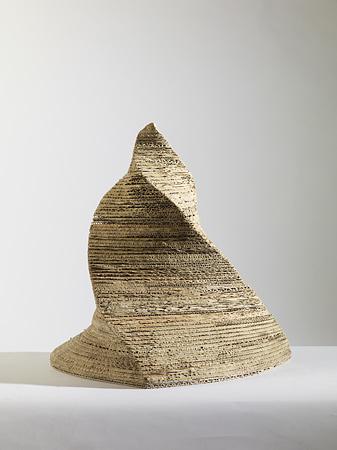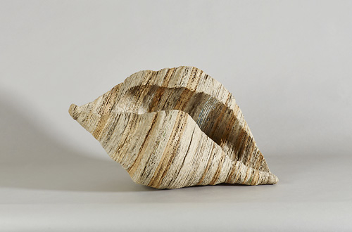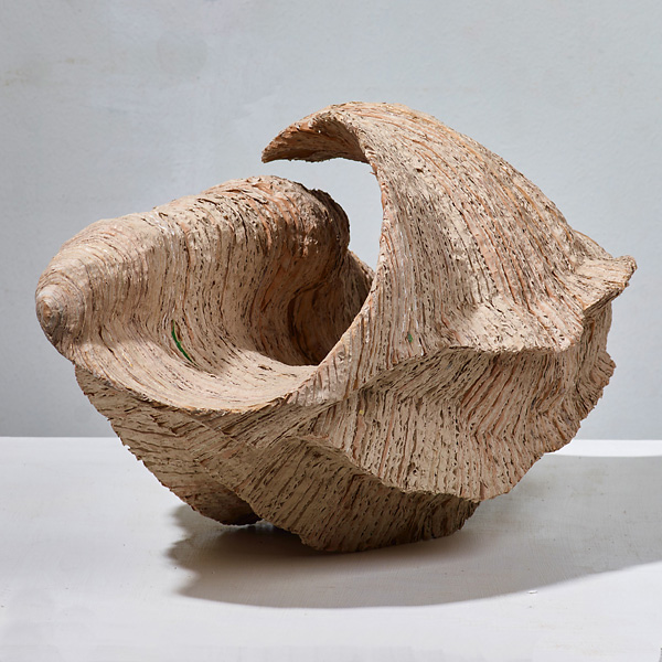 Roland Albert "Sternmuschel" 2020, Wellpappe, Leim, FarbeRoland Albert "Schriftbild XXXII" 2020, Mischtechnik (Faserschreiber, Acrylfarbe auf Nessel über Holz), 62 x 36 cmRoland Albert "Muschelschote"Roland Albert "Schneckentetride" 2010, Wellpappe, 45 x 47 x 50 cm