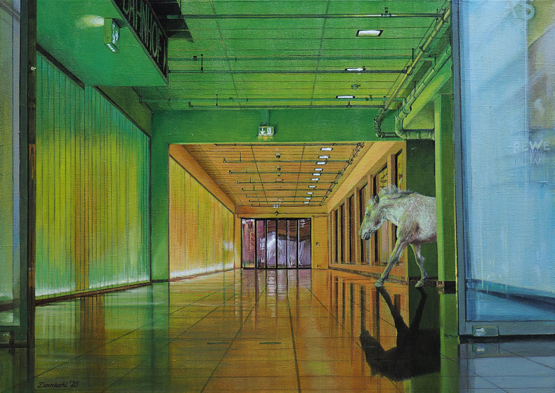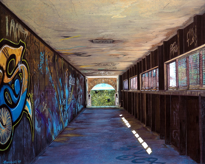 Stefan Danecki "Unterführung II" 2020Stefan Danecki "Alter Reiter 1" 2019, Acryl auf MDF, 40 x 50 cmStefan Danecki "Alter Reiter 2 (Waldstudie mit Krähen)" 2019, Acryl auf MDF, 40 x 50 cmStefan Danecki "Unterführung I" 2019, Acryl auf MDF, 40 x 50 cmStefan Danecki "Block C" 2016Stefan Danecki "Asche-Wolken-Studie" 2010, Acryllasur über Harzöl auf Leinwand, 40 x 50cmStefan Danecki "Feuer" 2005, Harzöl über Acryl, Leinwand auf MDF-Platte, 40 x 30 cmStefan Danecki "Veteran I " 1996, Airbrush, Acryl auf Karton, 70 x 50 cmStefan Danecki "Baum III" 1999, Airbrush: Acryl auf Leinwand, 60 x 45 cm