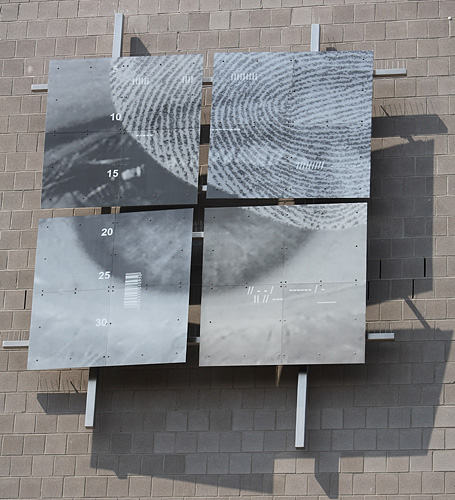 2006, am Polizeipräsidium in Kaiserslautern, Siebdruck auf Edelstahl, 425 x 425 x 50 cm