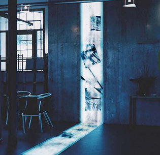 1999, Siebdruck auf Glas, hinterleuchtet, Stadtbücherei Kusel