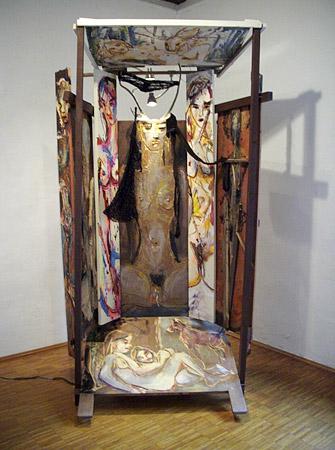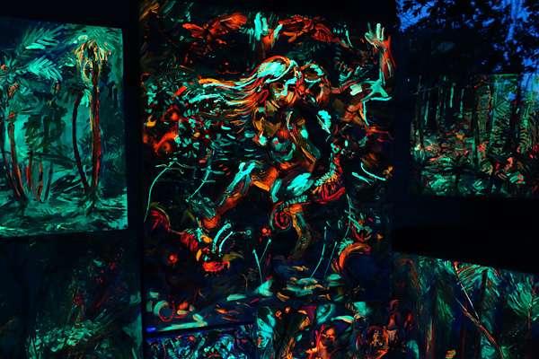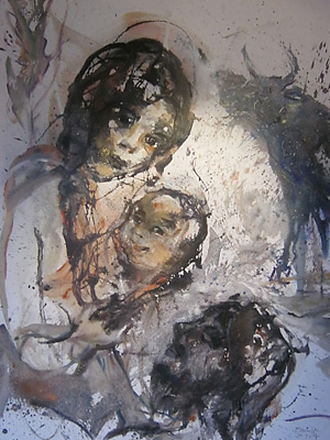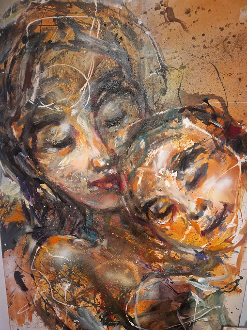 Martin J. Eckrich "o.T. (Bewegende Farben)" 2024, Acryl/Tusche-Mischtechnik auf Leinwand, 120 x 100 cmMartin J. Eckrich "Mutter mit Kind"Martin J. Eckrich "Im illuminierten Kunstgarten "Martin J. Eckrich "ohne Titel" 2023Martin J. Eckrich "ohne Titel" 2023Martin J. Eckrich "o.T. "Martin J. Eckrich "Virus" 2020, aus Glasfaser, Kunststoff, Metall, Papier, Kabel und gebranntem Ton gestaltet. Objekte: Kindersitz, Brille, Lichterschlange, Chines. Schirm, Bücher, Textblätter, Spritze, Mundschutz, Rohre, Flugzeugmodelle..., 200 x 200 x 200 cm Martin J. Eckrich "Weidenskulptur" 2019, Weidenstamm, Höhe: 700 cmMartin J. Eckrich "Heimaten" 2019Martin J. Eckrich "Ein Kind ist geboren" 2016Martin J. Eckrich "Fruchtbarkeitsschrein" 2011Martin J. Eckrich "Engelsgarten"Martin J. Eckrich "Kunstpark"