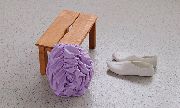 2016, Fußschemel, Badekappe, Schwimmschuhe, 50 x 50 x 18 cm