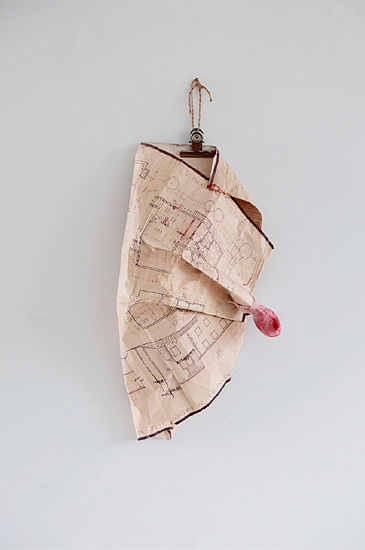 2014, Holz, Stoff, Metall, 25 x 30 x 128 cm