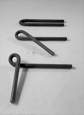 Stefan Forler "10 Stäbe" 1993, Stahl, geschmiedet, 170-200 cm x 10 cmStefan Forler "V.B. Im Durchgang (Klanggebilde 1) " 1979, Stahl, geschmiedet, 296 x 4 cmStefan Forler "o. T. (Gewirre 1)" 1986/87, Stahl, gebogen, 178 x 0,8 cm Stefan Forler "o. T. (Kurze Biegung)" 1989/90, Stahl, gebogen, 12,5 x 5 cmStefan Forler "3 Etappen" 1999, Stahl, gebogen, 277 x 1,8 cm Stefan Forler "Gebogen, weiter gebogen" 1988, 3-teilig, Stahl, gebogen, 12×100×280 x 6 cmStefan Forler "4 Elemente - 2 davon ineinander verschlungen" 2008, Stahl, gebogen, 290 x 4 cm Stefan Forler "Performance von Eva Yvonne Forler" WUHAN Aufführung am 12.01.99 Stefan Forler "60 Stäbe - Blick in den Raum"Stefan Forler "Turnierhof - 4 Objekte im Hof der Alten Münze (München)" 2003, Stahl, gebogen, 270 × 800 x 4 cm