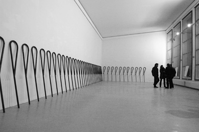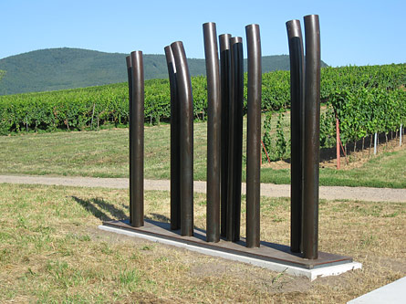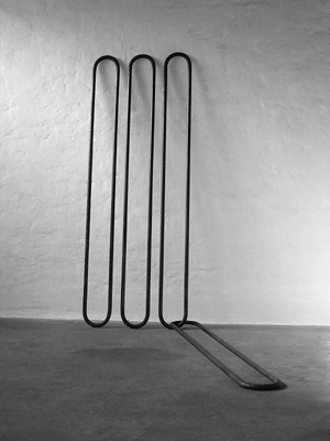 Stefan Forler "o.T." Stahl, gebogen. Foto: Thomas EngelbergStefan Forler "eins plus neun" 2016/1999, Modell im Maßstab 1:10, ca. 20 x 20 cmStefan Forler "o. T." 2015, Rundstahl gebogen, d: 4 cm, WV361Stefan Forler "ruhend" 2013, 3 Rundstahl-Elemente, 3 Glasscheiben, Höhe: 54 cm, Breite/Länge: 250 cmStefan Forler "Kleines Feuer" 2011, Stahl (4 cm Rundstahl) gebogen, 30 x 56 cmStefan Forler "Gang nach..." 2008/2012, 10 Stahlrohre, Durchmesser 160 mm auf Grundplatte 4 x 0,65 m, maximale Höhe 2,55 mStefan Forler "Gang nach..." 2008/2012, 10 Stahlrohre, Durchmesser 160 mm auf Grundplatte 4 x 0,65 m, maximale Höhe 2,55 m. Mit zwei Beton-Sitzblöcken, aufgebaut in Edesheim, am Rande des Mühlenweges in Richtung Hainfeld. Foto: Karlheinz Schmeckenbecher