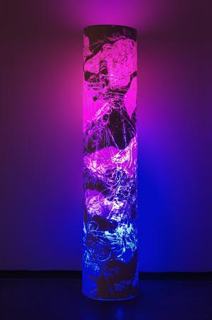 2011, Ritzzeichnung, Lack auf Polyesterfolie, farbige Neonröhren, 200 cm x Durchmesser 43 cm, Foto: Gerhard Kayser, Speyer