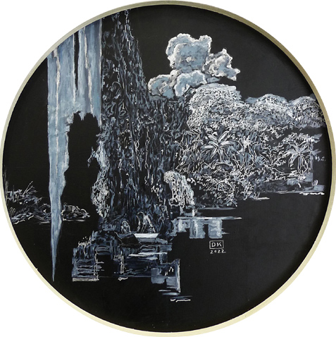 2022, Silberstift, Öl, Papier, Dm: 20 cm