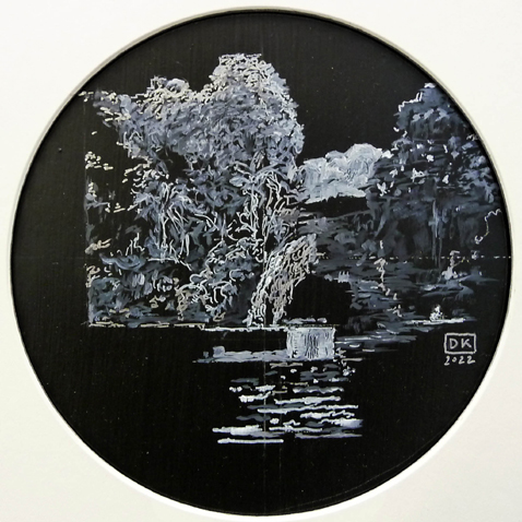 2022, Holz, Silber- und Weißstift, Öl, 45 x 45 cm