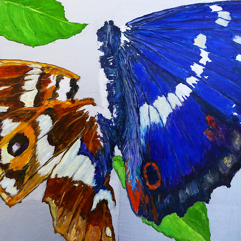 "Shattered butterfly: Großer Schillerfalter, versal, dorsal"