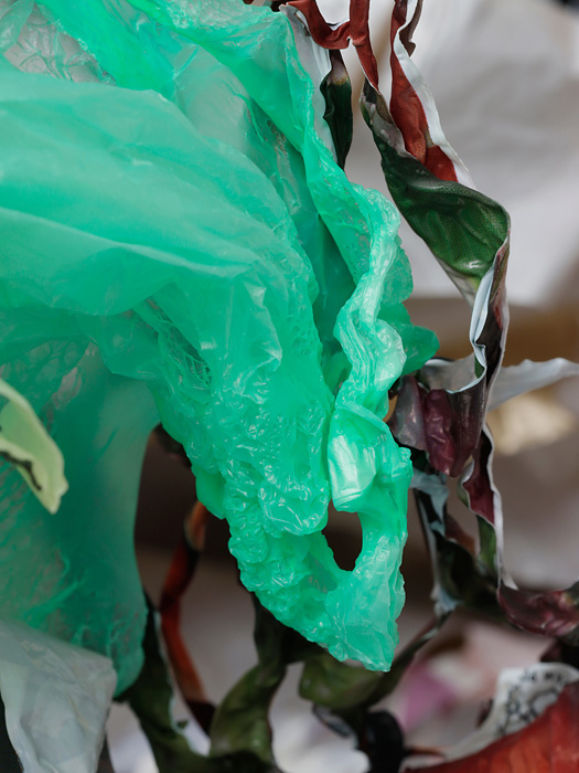 Patricia Kranz "Ohne Titel (3769)" 2023, Digitalfotografie, Plastiktüten, 60 x 80 cmPatricia Kranz "Ohne Titel (2356)" 2023, Digitalfotografie, Plastiktüten, 80 x 60 cmPatricia Kranz "Ohne Titel (8958)" 2021, Digitalfotografie, Plastiktüten, 105 x 140 cmPatricia Kranz "Ohne Titel " 2018, draping (aus der Werkserie Network), Plastiktüten, 120 x 90 x 70 cm. Foto: Claus Stolz