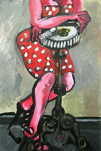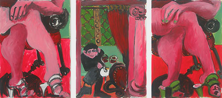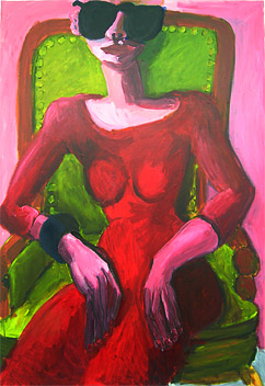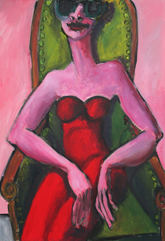 Bettina Kresslein "Frau im grünen Stuhl" 2014, Acryl auf Leinwand, 70 x 100 cmBettina Kresslein "Frau mit Sonnenbrille auf Sessel" 2013, Acryl auf LeinwandBettina Kresslein "Spitzenkleid Montag Canarin" 2011, Acryl auf Leinwand, 101 x 70 cm