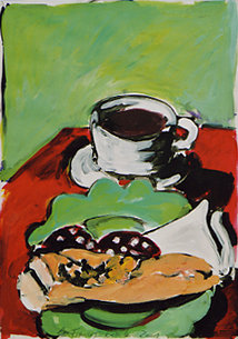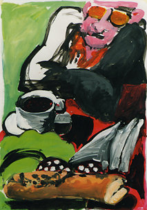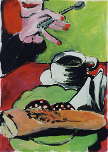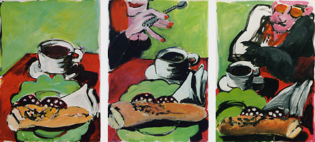 Bettina Kresslein "Teneriffa Canarin I (Kette)" 2011, Acryl auf Leinwand, 101 x 70 cmBettina Kresslein "Südpfalz VI (roter Weg)" 2011, Acryl auf Leinwand, 50 x 70 cmBettina Kresslein "Frau im Bistro" 2010, Acryl auf Leinwand, 79 x 118 cm Bettina Kresslein "Mann im Bistro" 2010, Acryl auf Leinwand, 57 x 107 cm Bettina Kresslein "Zucker (Zwei im Bistro)" 2010, Acryl auf Leinwand, 79 x 120 cm Bettina Kresslein "Frau auf Sofa II" 2009, Acryl auf Leinwand, 70 x 100 cm Bettina Kresslein "Sofa mit Kissen " 2009, Acryl auf Leinwand, 100 x 70 cm Bettina Kresslein "Sofa mit Trauben" 2009, Acryl auf Leinwand, 100 x 70 cmBettina Kresslein "Der Ball ist rund" 2005, Akryl auf Papier, 50 x 70 cm Bettina Kresslein "Der Schutz" 2005, Acryl auf Papier, 70 x 100 cm Bettina Kresslein "Soccer" 2005, Acryl auf Papier, 70 x 100 cmBettina Kresslein "Soccer" 2005, Acryl auf Papier, 70 x 100 cm Bettina Kresslein "Soccer" 2005, Acryl auf Papier, 70 x 100 cmBettina Kresslein "Dee Dee B. IV" 2001, Acryl auf Papier, 70 x 100 cm Bettina Kresslein "Dee Dee B. I" 2000, Acryl auf Papier, 70 x 100 cm Bettina Kresslein "Café Torino" 2004, Acryl auf Papier, dreiteilig, je 50 x 70 cm Bettina Kresslein "Café Torino II" 2004, Acryl auf Papier, 50 x 70 cm Bettina Kresslein "Café Torino VI " 2004, Acryl auf Papier, 50 x 70 cm Bettina Kresslein "Café Torino VII" 2004, Acryl auf Papier, 50 x 70 cmBettina Kresslein "Catia" 2001, Acryl auf Papier, 70 x 100 cm Bettina Kresslein "Jazz II" 2001, Acryl auf Papier, 70 x 100 cm Bettina Kresslein "Zitronen und Rouge" Acryl auf Papier, 50 x 85 cm Bettina Kresslein "La France" 2001, Acryl auf Papier, dreiteilig, je 50 x 70 cmBettina Kresslein "La France I" 2001, Acryl auf Papier, 50 x 70 cmBettina Kresslein "La France II" 2001, Acryl auf Papier, 50 x 70 cmBettina Kresslein "La France III" 2001, Acryl auf Papier, 50 x 70 cm