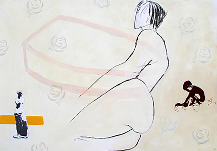 Meike Porz "Eva" 2024, Mischtechnik auf Papier, 25 x 70 cmMeike Porz "Nude I" 2023, Mischtechnik auf Papier, 30 x 21 cmMeike Porz "La Clé" 2017, Fotomalerei auf Aludibond, 40 x 165 cmMeike Porz "Stiller Sommer 1" 2010, Mischtechnik auf Papier, 42 x 30 cmMeike Porz "Stiller Sommer 2" 2010, Mischtechnik auf Papier, 42 x 30 cmMeike Porz "Stiller Sommer 3" 2010, Mischtechnik auf Papier, 42 x 30 cmMeike Porz "Akt 1" 2011, Fettkreide auf Papier, 21 x 15 cmMeike Porz "Akt 2" 2011, Fettkreide auf Papier, 21 x 15 cmMeike Porz "Akt 3" 2011, Fettkreide auf Papier, 21 x 15 cmMeike Porz "Kleines Gelb mit Venus" 2011, Mischtechnik auf Papier, 70 x 100 cmMeike Porz "Mantel, rot" 2011, Mischtechnik auf Papier, 70 x 100 cmMeike Porz "Hommage" 2011, Acryl auf Aquarellbütten, 240 x 113 cmMeike Porz "Paul I" 2011, Acryl auf Aquarellbütten, 240 x 113 cmMeike Porz "Paul II" 2012, Acryl auf Aquarellbütten, 240 x 113 cm