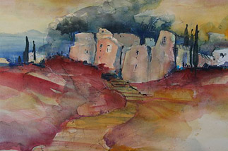 Birgit Vonholdt "Abbruch" 2011, Aquarell, 42 x 56 cmBirgit Vonholdt "Nach der Schneeschmelze" 2011, Aquarell, 50 x 65 cmBirgit Vonholdt "Sonnenuntergang im Januar" 2011, Aquarell, 36 x 48 cmBirgit Vonholdt "Gelbes Feld" 2011, Aquarell, 42 x 56 cmBirgit Vonholdt "Brückenhäuser" Aquarell, 24 x 30 cm Birgit Vonholdt "En Lavande" Aquarell, 36 x 51 cmBirgit Vonholdt "Rote Felsen" Aquarell, 31 x 41 cmBirgit Vonholdt "Wüstenfestung" Acryl auf Leinwand, 80 x 100 cmBirgit Vonholdt "Am Rand der Wüste" Acryl auf Leinwand, 80 x 100 cm Birgit Vonholdt "Fellachendorf" Acryl auf Leinwand, 40 x 50 cm Birgit Vonholdt "Maghreb" Acryl auf Leinwand, 40 x 50 cmBirgit Vonholdt "Le château" Acryl auf Leinwand, 70 x 90 cm