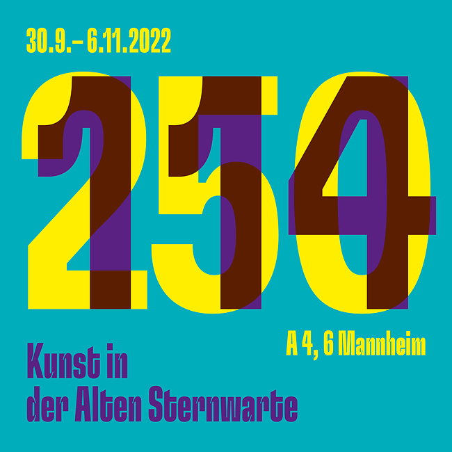 Mit dem Titel 250 / 114 greifen die Künstlernachlässe Mannheim (KNMA) diese zweigeteilte Geschichte auf. Neben Arbeiten von Edgar Schmandt, Norbert Nüssle, Franz Schömbs und Walter Stallwitz, die im Turm ihre Ateliers hatten, haben die KNMA sieben regionale Künstler*innen zu künstlerischen Interventionen im Gebäude eingeladen, die sich auf die Geschichte, die Forschung und die Astronomen beziehen: Rebekka Brunke, Immanuel Eiselstein, Eva Gentner, Barbara Hindahl, Alexander Horn, Mitsuko Hoshino und Konstantin Weber.