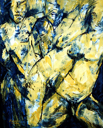Sieglinde Enders, Gildemeisterin - Die Künstlerin verfolgt das Ziel, wie durch einen zusätzlichen Sinn, mit ihrer Malerei die Welt wahrzunehmen und neu zu interpretieren. Darum wählt sie sich zum Gegenstand ihres künstlerischen Schaffens etwas, das man durch die herkömmlichen fünf Sinne alleine nicht ausreichend erfassen und begreifen kann: Sie befasst sich mit dem unerschöpflichen Thema Mensch.