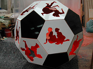 Besonderer Höhepunkt verspricht die Fußballskulptur und die dazugehörigen Installationen des Treidlers Adam Tumele zu werden, mit denen er den zentralen Raum der artgalerie ausgestaltet hat.