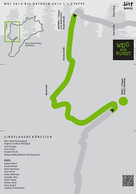 abschließt. Die in einem Zeitraum von 10 Tagen von geladenen Künstlern u. a. aus Portugal, Luxemburg und Bosnien-Herzegowina und den Mitgliedern der KWG gefertigten Werke, werden entlang eines 3,5 km langen Teilstücks des König-Albrecht-Weges (KAW) - beginnend Ecke Kant-/Bremerstraße, vorbei am Bremerhof bis hoch zum Humbergturm - installiert.