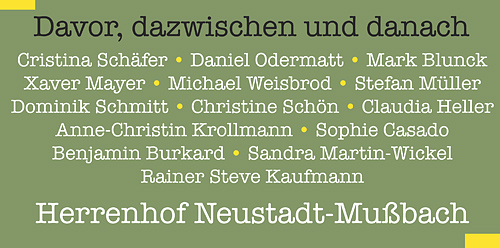 Cristina Schäfer | Daniel Odermatt | Mark Blunck | Xaver Mayer | Michael Weisbrod | Stefan Müller | Dominik Schmitt | Christine Schön | Claudia Heller | Anne-Christin Krollmann | Sophie Casado | Benjamin Burkard | Sandra Martin-Wickel | Rainer Steve Kaufmann