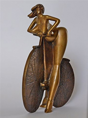 Horst Schöneich: "Auf dem Radl", 1987, Bronze, 20 x 13,5 cm