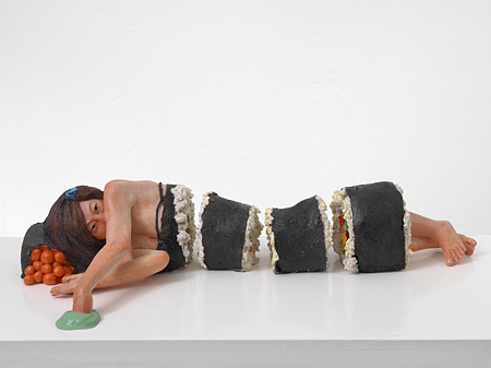 Feng Lu Von ganz anderem Charakter sind die dreidimensionalen Arbeiten von Feng Lu. Schon als Kind fertigte der künftige Bildhauer im ärmlichen Hinterhof seiner Eltern aus Kreide humorvolle Kunstwerke. Der junge Chinese studierte zuerst in Mainz bei Christa Biederbick, dann in Berlin bei Karin Sander und Inge Mahn und abschließend als Meisterschüler bei Wolfgang Petrick Malerei und Bildhauerei. Er vertritt gegenwärtig eine junge, international orientierten, chinesische Künstlergeneration. In seinen Skulpturen aus bemaltem Epoxidharz bevorzugt Feng Lu einen übersteigerten Realismus und wird derart zum kritischen Betrachter europäischer sowie asiatischer Lebenswelten. Seine Menschenbilder sind schonungslos radikal, voll Witz und Sarkasmus. Fern von falschen Mitleid, hält er der veräußerlichten Gesellschaft seinen künstlerischen Spiegel entgegen. Die Arbeiten von Feng Lu sind charakteristisch für eine bestimmte Richtung innerhalb der zeitgenössischen Bildhauerei, in der - inhaltlich ohne Tabus - scheinbar jede Form von Körperlichkeit erlaubt ist.