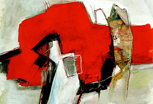 Natürlich tauchen in apk-Ausstellungen die "üblichen Verdächtigen" auf, die Arbeitsgemeinschaft ist schließlich ein Verbund, der auf Langfristigkeit ausgelegt ist. Man begegnet also Arbeiten von Gabriele Domay, Evelyn Blaich und Brigitte Sommer, Jochen Frisch, der auch in der Villa Streccius - wie vordem im Herrenhof Mussbach - "Raben Schlitten fahren" lässt. Georg Pfadt und seinen kraftvollen informellen Mischtechniken, Artur Bozem, der ähnlich arbeitet, aber mit ganz anderen Farben zu Werke geht und selbstredend völlig anders ist. Alexandra Deutsch und ihren Papierobjekten. Und der Pfalzpreisträgerin Felizitas Mentel, deren "3 Lava-Adern" auch in einer Gründerzeitvilla ihre glühende Wirkung entfalten. Zudem kann man darüber staunen, dass der zumeist in blauen Tönen arbeitende Manfred Plathe auf hellere, lichtere, um nicht zu sagen kreischende Farben umgestellt hat.