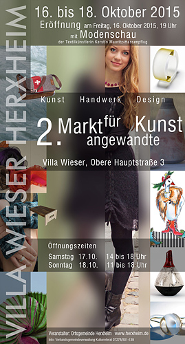 Der Markt eröffnet mit einer Modenschau, die die Arbeiten der Textilkünstlerin Kerstin Mauritz-Hassenpflug präsentiert. Nach der Begrüßung durch Ortsbürgermeister Franz-Ludwig Trauth führt Evelyn Hoffmann, M.A. in die Ausstellung ein.