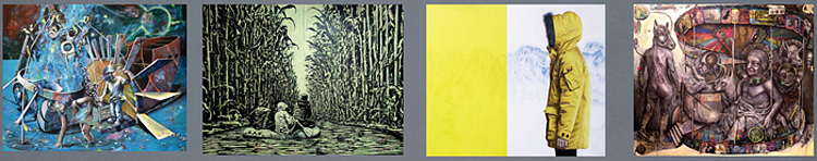 Josef Rosalia Hein, 1979 in Bad Dürkheim geboren, war 2008 Meisterschüler von Markus Lüpertz und erhielt 2012 den Pfalzpreis für Bildende Kunst im Bereich Malerei. [www.josef-rosalia-hein.de] Daniel Odermatt, 1983 in Speyer geboren, wurde im selben Jahr mit dem Nachwuchspreis in der Sparte Malerei ausgezeichnet. [Daniel Odermatt in der Rubrik KÜNSTLER] Dominik Schmitt, 1983 in Neustadt/W. geboren, war u.a. Gewinner des Förderpreises Pfälzer Kunstfreunde 2009 und Preisträger für "Best Animated Short Film" bei den International Film Awards Berlin 2014. [www.dominik-schmitt.com] Benjamin Burkard, Jahrgang 1986, erhielt neben anderen Förderungen 2014 den Item-Kunstpreis für Malerei und erregte in jüngster Zeit nicht zuletzt durch das Großprojekt "Big Wall" - szenische Bemalung einer langen Hafenmauer im Mannheimer Jungbusch - viel Aufsehen. [www.benjamin-burkard.de]