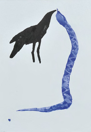 Abi Sheks großformatige Holzschnitte und Zeichnungen von Tieren sind kein äußeres Abbild. Reduziert auf einen inneren Kern wollen sie das rationale Bewußtsein durchdringen und Räume anklingen lassen, in denen Mensch und Tier noch als Seelenverwandte miteinander verbunden waren.