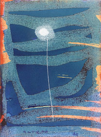Weil sich die Besitzer dieser Bilder zierten und sie nicht ausleihen wollten, kann in Speyer leider nur die Arbeit "Staffelei im Lampenlicht" davon Zeugnis ablegen, dies aber ungemein eindrucksvoll. Die Versenkung in die Schriften des Anthroposophen Rudolf Steiner 1929/30 verleidete Alo Altripp allerdings bald die glatte realistische Perfektion, so souverän er sie auch beherrschte und magisch aufleuchten lassen konnte. Fortan malte er lyrisch abstrakt und setzte seine selbst formulierte Maxime "Kunst ist Geistform" auch technisch immer raffinierter um.