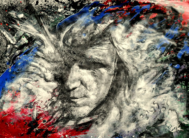 Politisch engagiert und Kunst und Kultur eben nicht nur in seinem Atelier befeuernd tritt er für den genaueren Blick, das explizite Hinsehen auf - und bei sich bietender Gelegenheit - auch mal unter die Oberfläche ein. Das Kritische verkörpern - sei es auf Papier, Leinwand, mithilfe vorgefundener Materialien oder in der zwischenmenschlichen verbalen Auseinandersetzung - ist sein Aufgabengebiet.