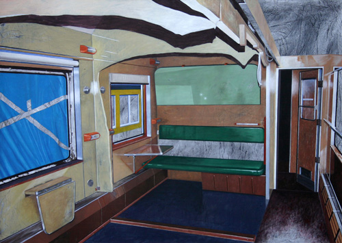 Anne Janoschka: "Abteil (Ukraine)", 2011, Acryl auf Leinwand, 100 x 140 cm