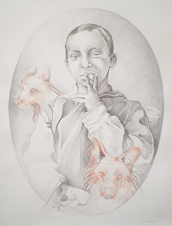 In ihren neuesten grafischen Arbeiten - der Serie "Initiation" und "Maturity" - beschäftigt sich Kuska mit der spezifischen Problematik von Rollen und Erwartungshaltungen, die sich durch das Spannungsfeld von Individuum und Gruppe ergeben. In der Serie "Initiation" geht es um junge Menschen, die erwachsen werden und ihre Rolle in der Gesellschaft finden müssen. In der Serie "Maturity" hingegen wird eine Reihe von Frauenbildnissen vorgestellt, teilweise Persönlichkeiten aus dem öffentlichen Leben, die ihren Selbstfindungsprozess bereits abgeschlossen haben. Ergänzend zu diesen beiden Serien werden in der Galerie N Zeichnungen und Druckgrafiken gezeigt, die weitere Gedanken zu den oben genannten Themenkreisen darstellen.