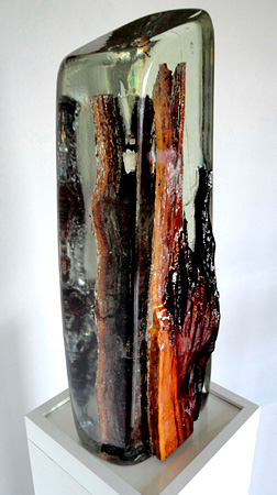 Arnhild Noack Das gelungene Spiel mit Licht und Transparenz ist mein Anliegen und meine Herausforderung. Lichtblicke und Innehalten im Kontrast zum schnellen Alltag unserer Zeit. Stimmungen in und aus der Natur festhalten und bewahren. Schwerpunkte meiner Ausbildung waren Bildhauerei, Objektgestaltung und Malerei. Mein Interesse galt in dieser Zeit (vier Jahre) hauptsächlich der Formgestaltung in Stein, Ton, Holz und Metall. Danach habe ich etwa zehn Jahre Stahlskulpturen und Objekte in Holz gestaltet. Doch ich war auch immer auch auf der Suche nach einem ungewöhnlichen und lichten Material. Letztendlich wurde ich in dem glasklaren Polyesterharz fündig. Es entstehen Objekte, die im Tageslicht eines Fensters den Ausblick dahinter mit einbeziehen und mitwirken lassen. Sie sind eher mit Skulpturen zu vergleichen, die in eine Raumsituation hinein platziert werden können. Das Arbeiten mit diesem eigenwilligen und brüchigen Gießharz erfordert viel Erfahrung und Geduld, da man, nachdem die Form hergestellt und ausgegossen ist, die langen Aushärtungszeiten abwarten und oft auch nach misslungenen Güssen wieder neu starten muss. Trotzdem oder auch gerade deswegen fasziniert es mich jeden Tag wieder aufs Neue. Die durchaus beabsichtigten Brüche, Risse und Unebenheiten erreiche ich durch mehrere aufeinander folgende Gussprozesse und Schichtungen. Diese stehen dann im spannenden Gegensatz zum kristallinen und klaren Material. Anregung und Inspiration finde ich in der Natur. Eigene Fotoaufnahmen werden auf Folie aufgebracht und mit eingegossen. Durch diesen Prozess wird die Folie transparent, ein Teil der Farben verschwindet, die Motive erscheinen abstrakt, fremd und faszinierend. Um farbige, brillante Farbflächen zu erzielen verwende ich Transparentpigmentfarben, die im heißen Zustand schnell gerührt, gegossen und geformt werden. Es entstehen überraschende Verschmelzungen, Vertiefungen und neue Formen. Auch organische Materialien, wie seltene transparente Blütenblätter kleine Samenhülsen und Seidenpapiere werden festgehalten. Meine neuesten Arbeiten werden dezent mit LED beleuchtet, nie bunt, das farbige Lichtspiel entsteht durch eingegossene Objekte (z.B. Pflaumenholz, Weinrebe). Alle meine Arbeiten sind Unikate, keines lässt sich in gleicher Form nacharbeiten.