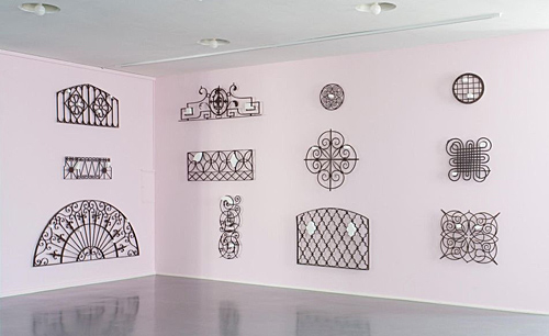 Anselm Baumann hat in seiner Ausstellung "Haken, Löcher und Geschmeide" die Schmiedeeisensammlung des Museums in den künstlerischen Fokus genommen und neu installiert. Was aber haben sie miteinander zu tun: Schmiedegitter aus dem 16. Jahrhundert, gefertigt in einer traditionellen Handwerkskunst, und bunte Ringe, vom Frankfurter Künstler aus Epoxidharz gegossen? Hat Kunsthandwerk heute noch einen Stellenwert? Was geschieht mit den kunsthandwerklichen Objekten, wenn ein Künstler sie in seine Neubetrachtung rückt?