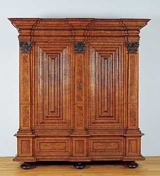 Schmuckstück aus Nadelholz mit Nussbaum furniert: Wellenschrank vom Ende des 18. Jahrhunderts