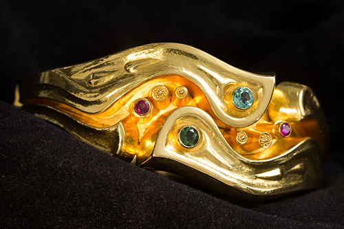 Prof. Erwin W. Huppert: "Armreif (Detail)", Gold, Granulation, Turmaline und Rubine, Privatbesitz, Foto: A. Kusch, mpk