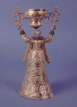 Gegossen, getrieben, ziseliert, punziert und vergoldet: Jungfrauenbecher aus Silber, gefertigt von dem Nürnberger Meister Hans Kellner, 1593/1602 - ein Prachtstück der Kunsthandwerklichen Sammlung des mpk