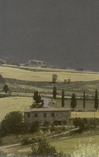 Vielleicht kommt es Otfried Culmann dagegen mehr auf die Schönheit an. Auf eine chiffrenhafte, fast schon transzendierte Schönheit, die sich unser einziger pfälzischer Surrealist von Graden als pars pro toto für die italienische Bellezza in seine Bilder holt. Er hat sich geradezu ein Verweissystem geschaffen, das Italien präsentiert, ein nicht selten winddurchwehtes Italien mit Palazzi, Zypressen, Brunnen, Aquaedukten, Villen, üppige Gärten, üppigem Grün, auch dem einen oder anderen Auto, das für italienisches Stilbewusstsein steht. Wenn man sich seine Bilder länger anschaut, ahnt man jedoch bald, dass sie symbolhaft wirken sollen: Es ist das Paradies, das hier gemalt wurde, und wohl nicht zufällig besitzt es Ähnlichkeiten mit Italien.
