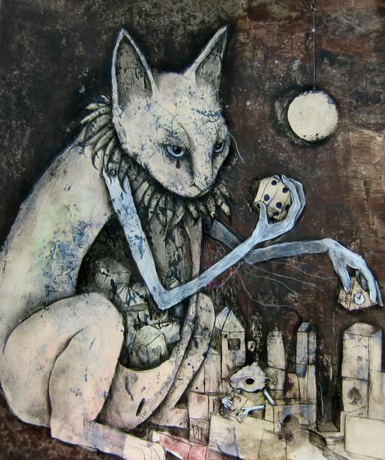 Dominik Schmitt, den Betrachtern bereits wohlbekannt durch Preise und zahlreichen Ausstellungen in der Region, zeigt hier einige kleinformatige Stücke, die technisch Malerei, Zeichnung und Collage zugleich sind. Sie entwerfen eine bewußt geheimnisvoll gehaltene Figurenwelt, die erzählen will und doch vieles zurück hält, die dem Betrachter Andeutungen anbietet und an einer anderen Stelle wieder aufnimmt, kunsthistorische Zitate eingeschlossen.