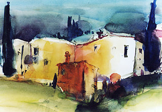 Der Moment und das Aquarell. Es gibt wohl keine andere adäquate Symbiose des Flüchtigen und seiner Maltechnik. Wenn Birgit Vonholdt in der Provence oder in der Toskana unterwegs ist, dann ist mit wenigen graphischen Umrissen und etwas Wasserfarbe ein Motiv rasch eingefangen. Die spontane Technik erlaubt es, Eindrücke und Stimmungen schnell und authentisch vor Ort festzuhalten.