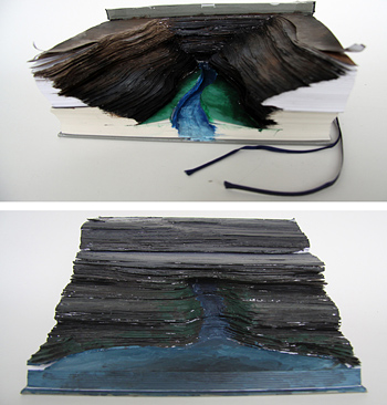 Bücher lassen uns in fremde Welten und Landschaften reisen. So haben die Schüler einer 8. Klasse des Otto-Hahn-Gymnasiums außergewöhnliche Landschaften, Gebirge, Schluchten, Täler und Meere erfunden und aus Künstlerlexikonbänden herauswachsen lassen. Orte, die unsere Fantasie beflügeln.