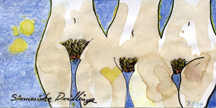 Für die Ausstellung in den Räumen der Hauptstraße 129 wurde dieses Jahr aber auch eine Doppelausstellung konzipiert, wozu das bekannte Künstlerduo "Bellem Brothers" eingeladen wurde. 1998 gründen Thomas Salzmann (SATOMA) und Mike Überall offiziell das Künstlerduo "Bellem Brothers". Mit großer Offenheit für alle Medien entstehen Serien von Zeichnungen, die sich per Post von Stadt zu Stadt vollenden, Filme, Musik oder Mixed Media Rauminszenierungen (zuletzt "Motel Bellem Brothers", 2004, Kunstmesse Rheinland-Pfalz). Ihre Zeichnungen und Aquarelle, frei in Thema und Umsetzung, wurden zu begehrten Sammlerstücken.