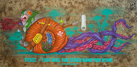 Tentakel sind die Hauptakteure des Künstlers. Sie tauchen in seinen Werken immer wieder in den verschiedensten Formen und Arten auf. Kenz greift in diesen Werken die Mythologie um die gefährlichen Lebewesen auf und inszeniert sie entgegen aller Erwartungen als lebensrettende intelligente Wesen. Bei genauem Betrachten entpuppen sich die Tentakel als liebenswerte Kreaturen. Auf diese Weise werden nicht nur Schönheitsideale hinterfragt, auch Vorurteile werden widerlegt. Es zeigt das Spiel aus Sein und Schein, Wirklichkeit und Vorstellungskraft. Seine Bilder - überwiegend gestaltet mit einer speziellen Mischtechnik sowie Acryl auf Leinwand oder Holz - implizieren oft eine hintergründige Gesellschaftskritik. Immer wieder schimmert der Graffiti-Background des Künstlers in seinem Stil und den gewählten Farbkombinationen durch.