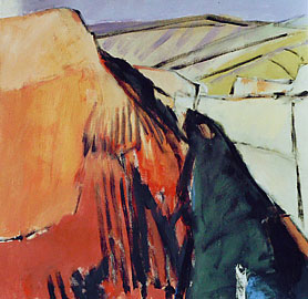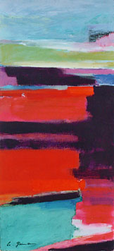 In der Villa Wieser zeigt sie ihre neuesten Arbeiten in zwei Werkgruppen: Landschaft und geometrische Formen in teilweise kräftigen Farbordnungen.