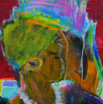 Imke Stolle d'Silva: "Demask", 2018, Acryl/Leinwand/Holzkorpus, 30 x 30 cm