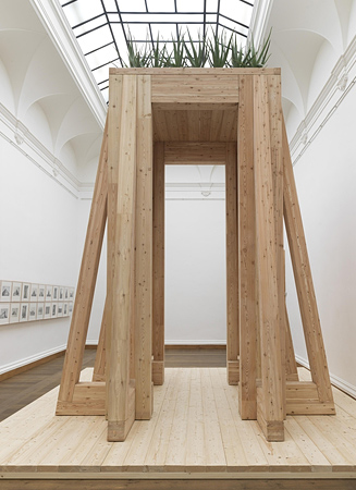 Eigens für die Ausstellung im mpk entwickelt - Claus Bury: "Tempeltor", 2014, Holzskulptur