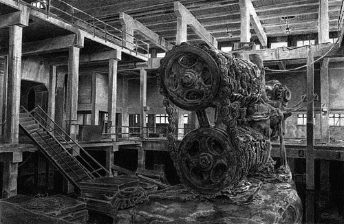 Alexander Schellbach: "Bitterfeld", 2010, Kohle und Kohlestift auf Papier, 22 x 30 cm